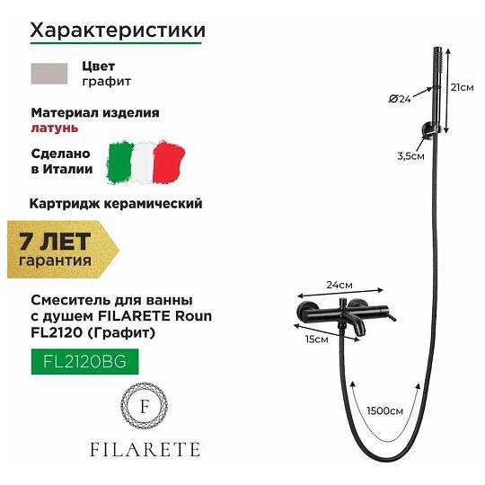 Смеситель для ванны FILARETE Roun FL2120BG, графит. Гарантия: 7 лет. Цвет: графит. Количество режим душевой лейки: 1.