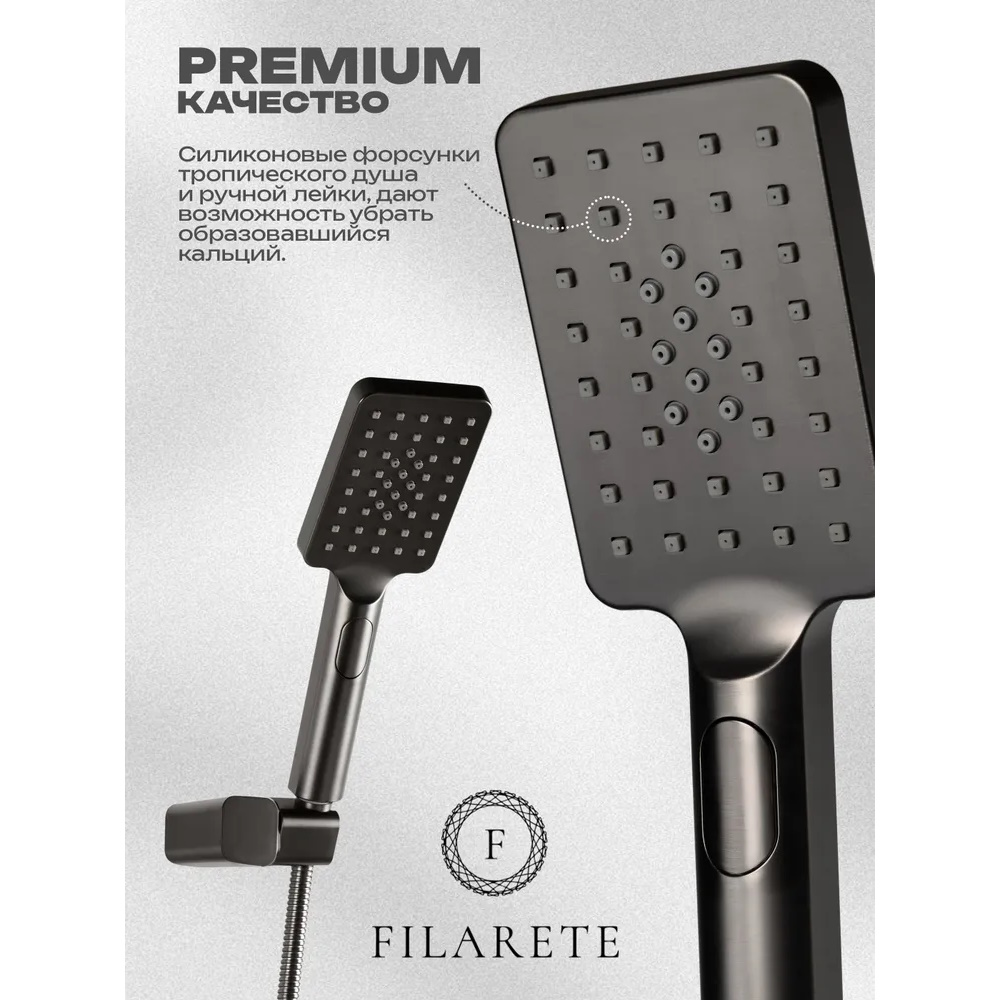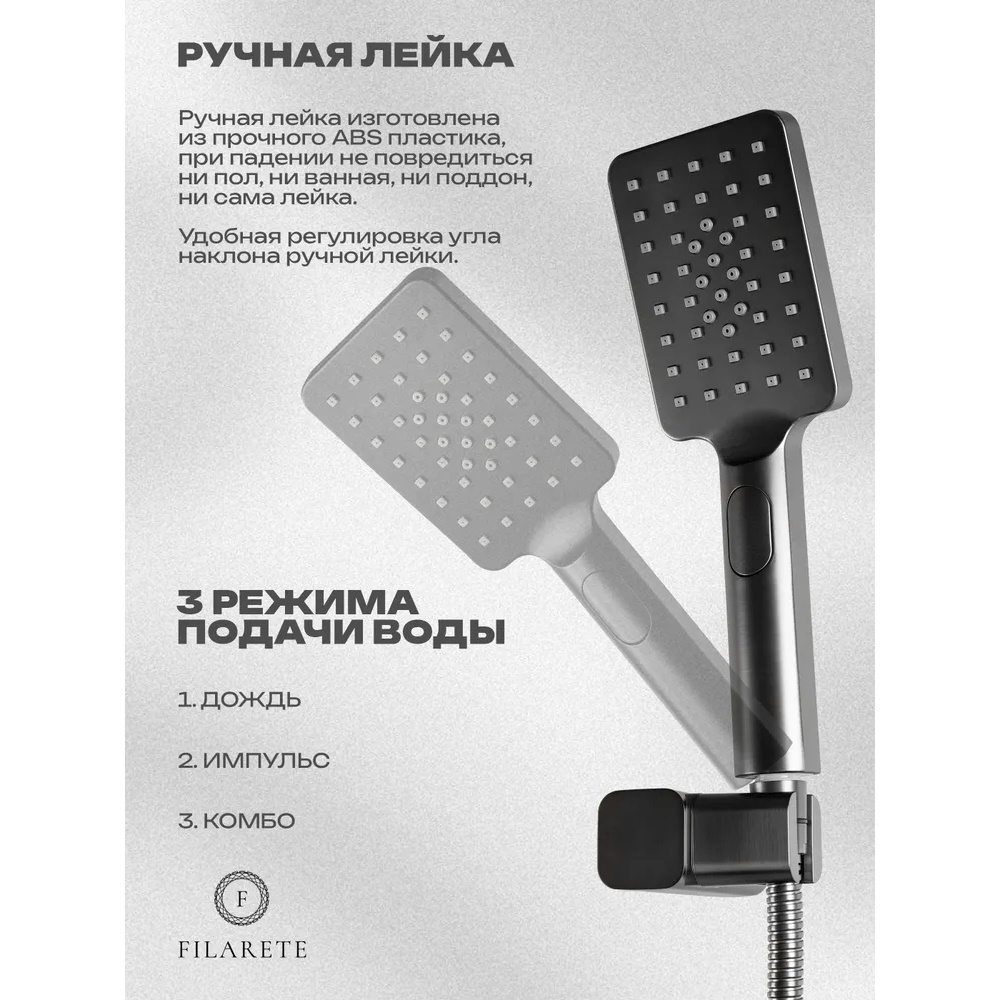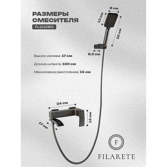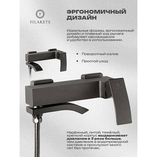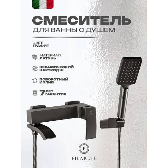 Смеситель для ванны FILARETE Waterfall FL2110BG, графит. Гарантия: 7 лет. Цвет: графит. Количество режим душевой лейки: 3.