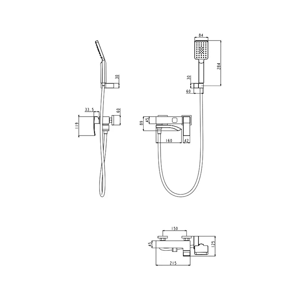 Смеситель, шланг, душевая лейка, держатель душевой лейки, эксцентрики, отражатели