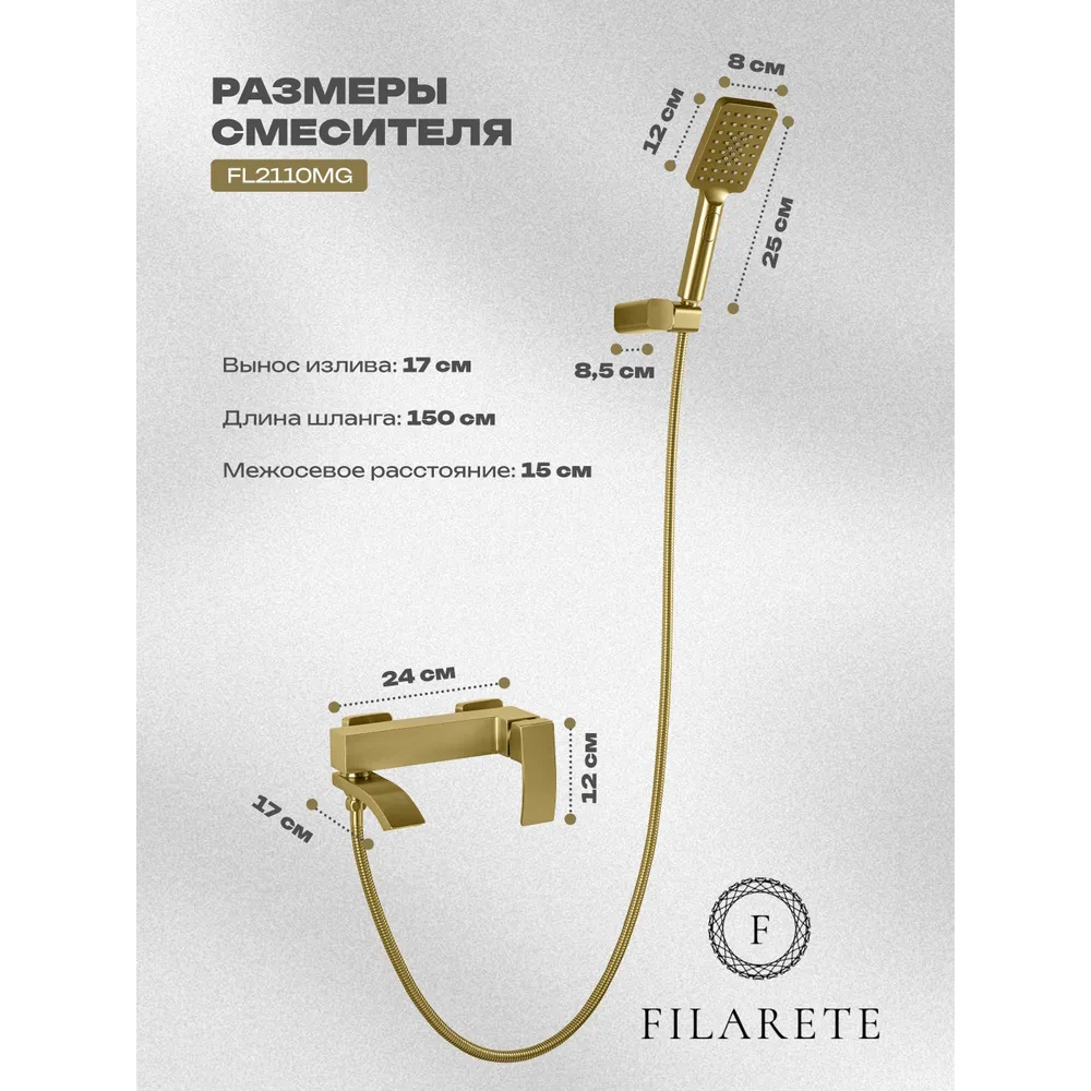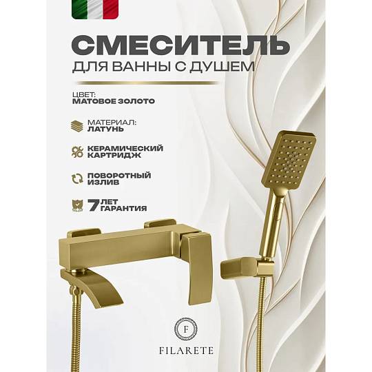 Смеситель для ванны FILARETE Waterfall FL2110MG, матовое золото. Гарантия: 7 лет. Цвет: матовое золото. Количество режим душевой лейки: 3.