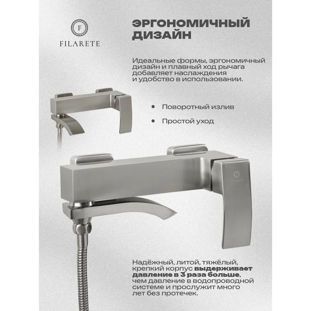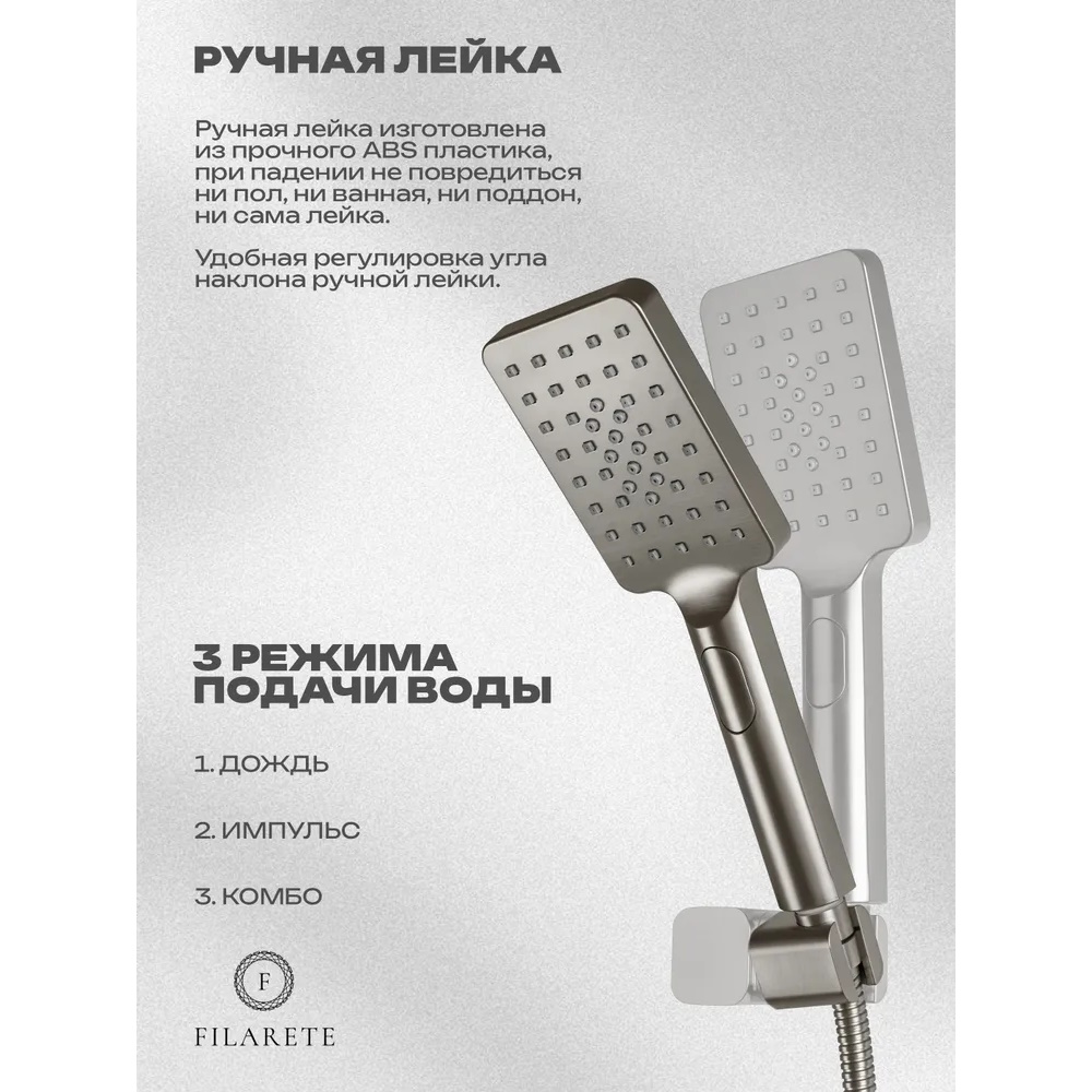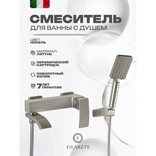 Смеситель для ванны FILARETE Waterfall FL2110NK, никель. Гарантия: 7 лет. Цвет: никель. Количество режим душевой лейки: 3.