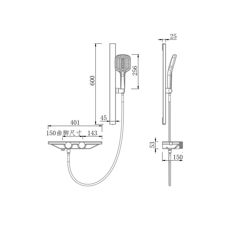 Смеситель, душевая лейка, шланг, штанга с держателем