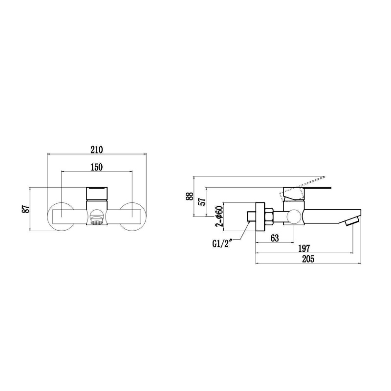 Смеситель для ванны Fmark FS8202Q — строгий графитовый стиль и надёжность.