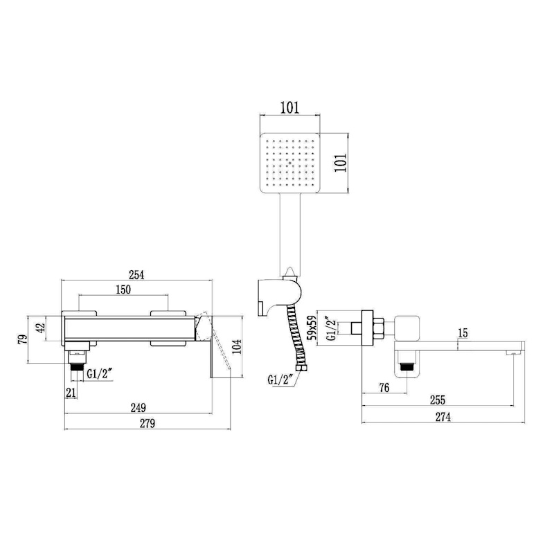 Плоский, литой, направленный строго вниз — исключает разбрызгивание воды и подходит даже под узкие ванны.