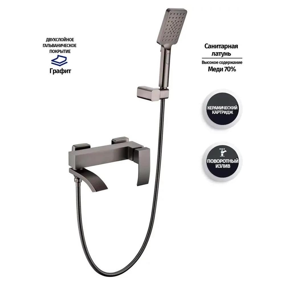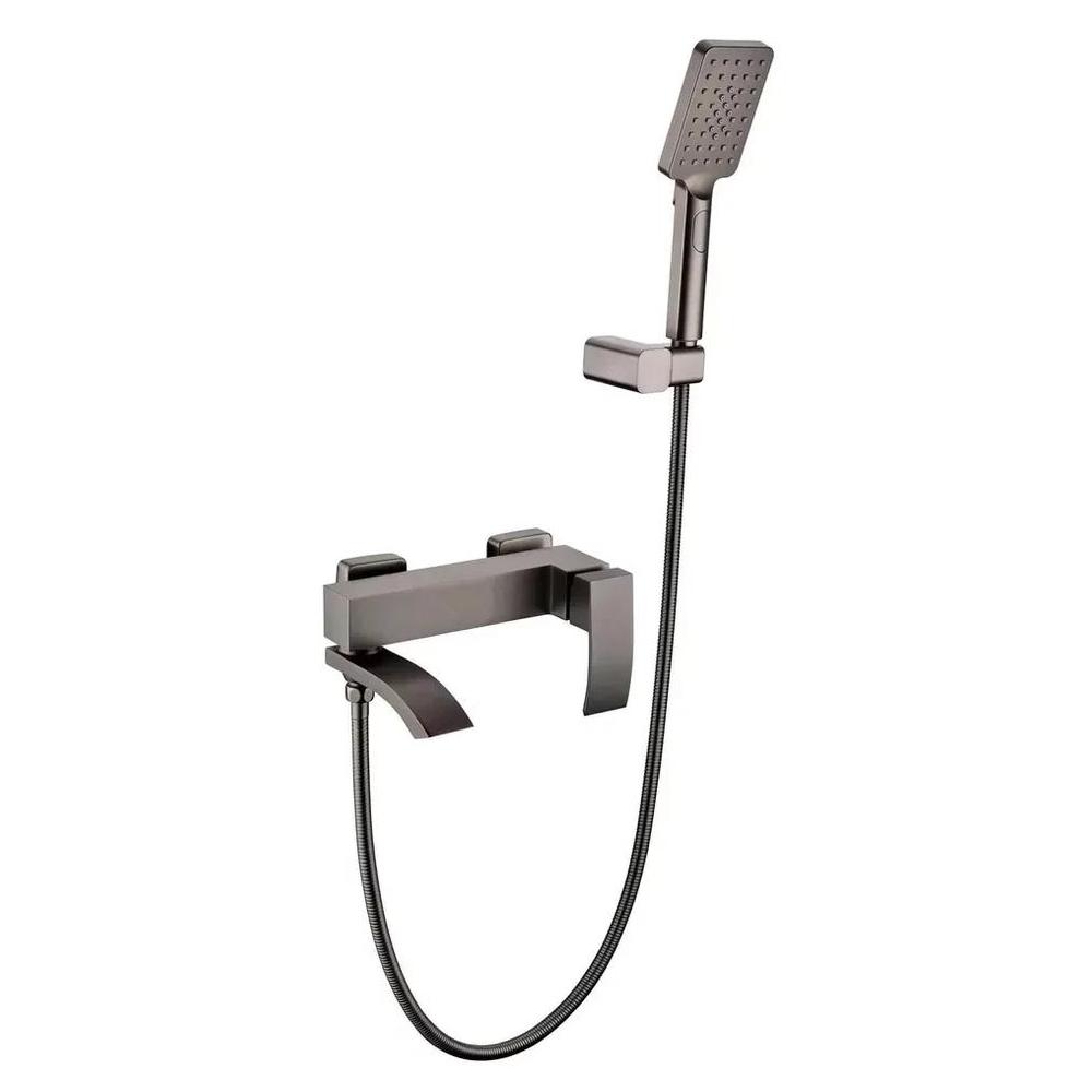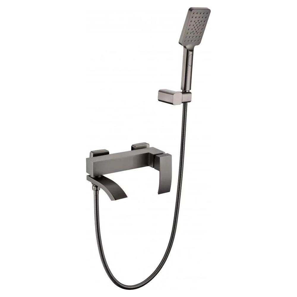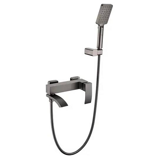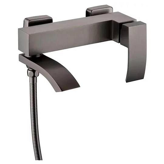 Смеситель для ванны Grocenberg GB8007BG, графит. Стилистика дизайна: современный стиль. Монтаж: настенный. Излив: традиционный поворотный. Управление: рычажное. Исполнение шланга: металл. Комплектация: смеситель, шланг, душевая лейка, держатель душевой лейки, эксцентрики, отражатели.