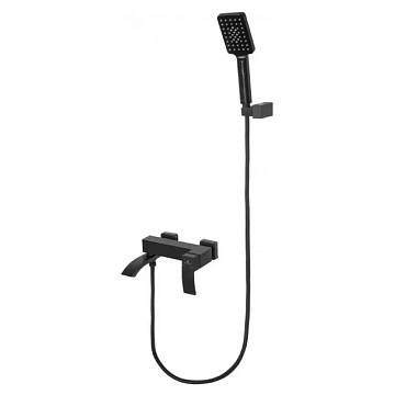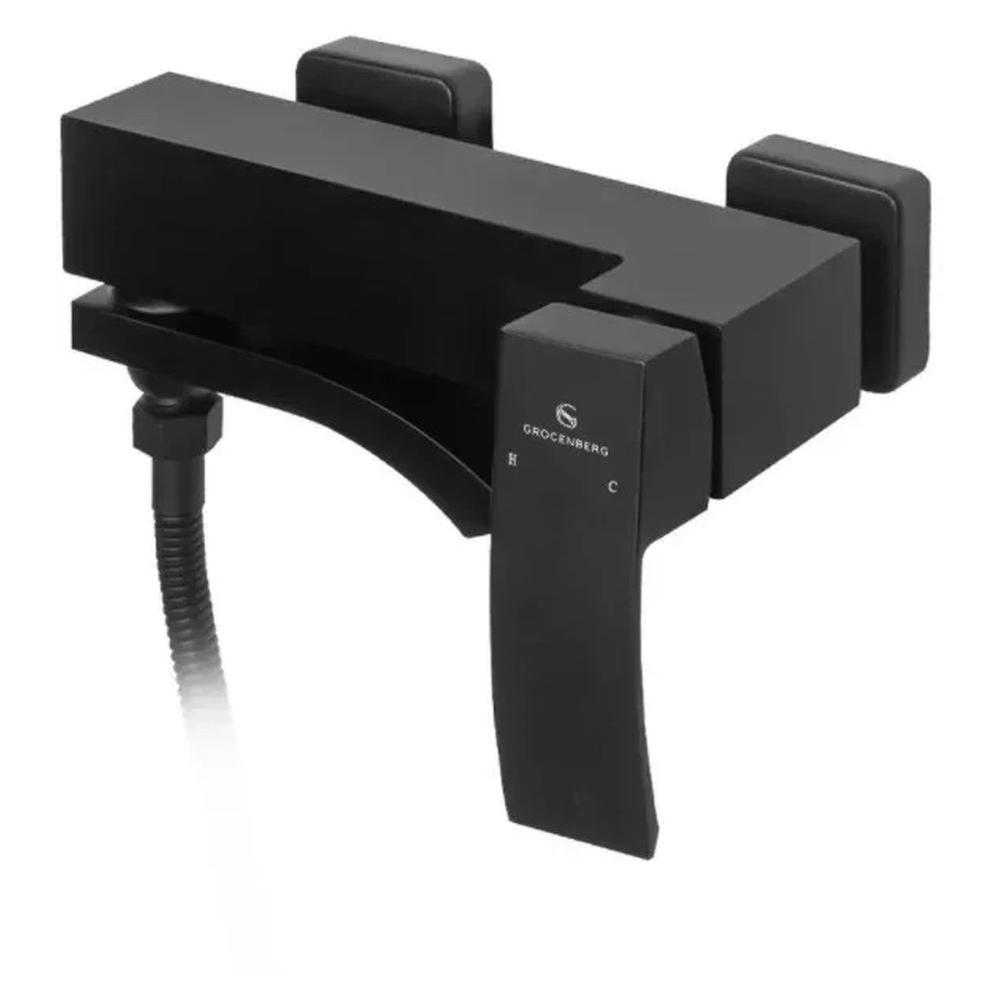 Смеситель для ванны Grocenberg GB8007BL, черный. Стилистика дизайна: современный стиль. Монтаж: настенный. Излив: традиционный поворотный. Управление: рычажное. Исполнение шланга: металл. Комплектация: смеситель, шланг, душевая лейка, держатель душевой лейки, эксцентрики, отражатели.