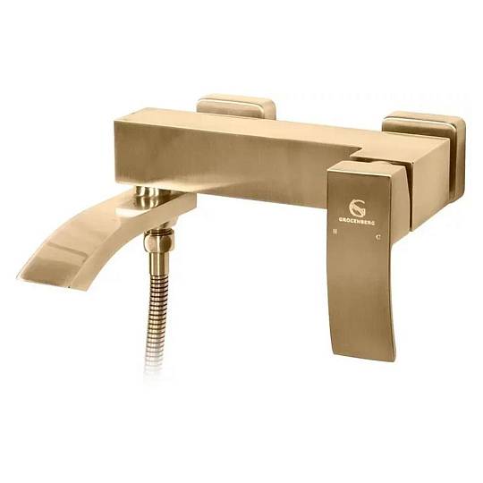 Смеситель для ванны Grocenberg GB8007BR, бронза. Стилистика дизайна: современный стиль. Монтаж: настенный. Излив: традиционный поворотный. Управление: рычажное. Исполнение шланга: металл. Комплектация: смеситель, шланг, душевая лейка, держатель душевой лейки, эксцентрики, отражатели.