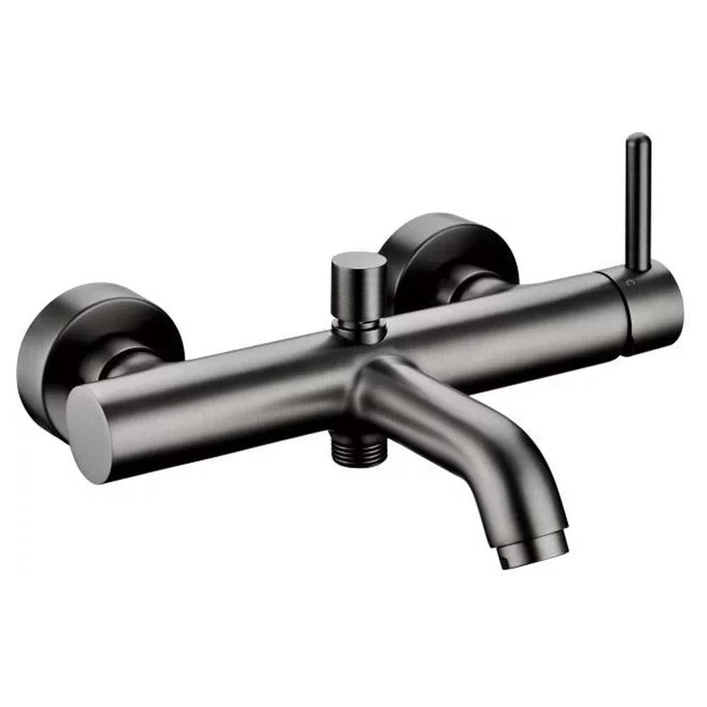 Смеситель для ванны Grocenberg GB8099BG, графит. Стилистика дизайна: современный стиль. Монтаж: настенный. Излив: традиционный фиксированный. Управление: рычажное. Исполнение шланга: металл. Комплектация: смеситель, шланг, душевая лейка, держатель душевой лейки, эксцентрики, отражатели.