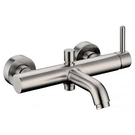 Смеситель для ванны Grocenberg GB8099NK, никель. Стилистика дизайна: современный стиль. Монтаж: настенный. Излив: традиционный фиксированный. Управление: рычажное. Исполнение шланга: металл. Комплектация: смеситель, шланг, душевая лейка, держатель душевой лейки, эксцентрики, отражатели.