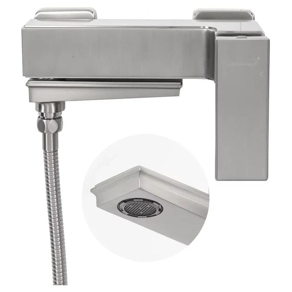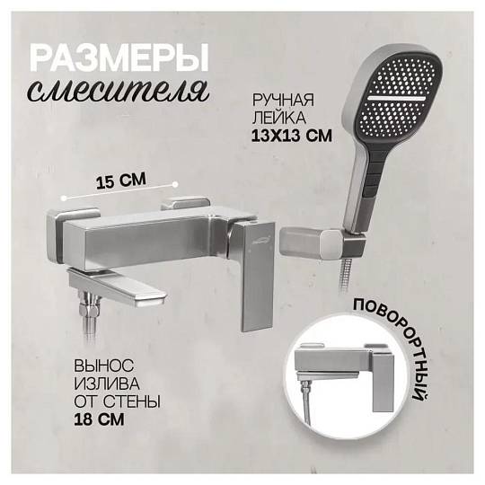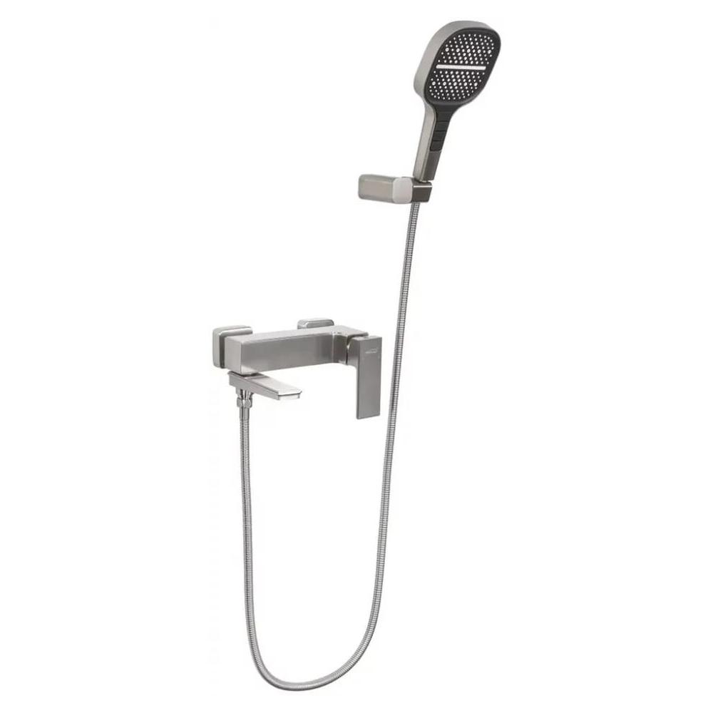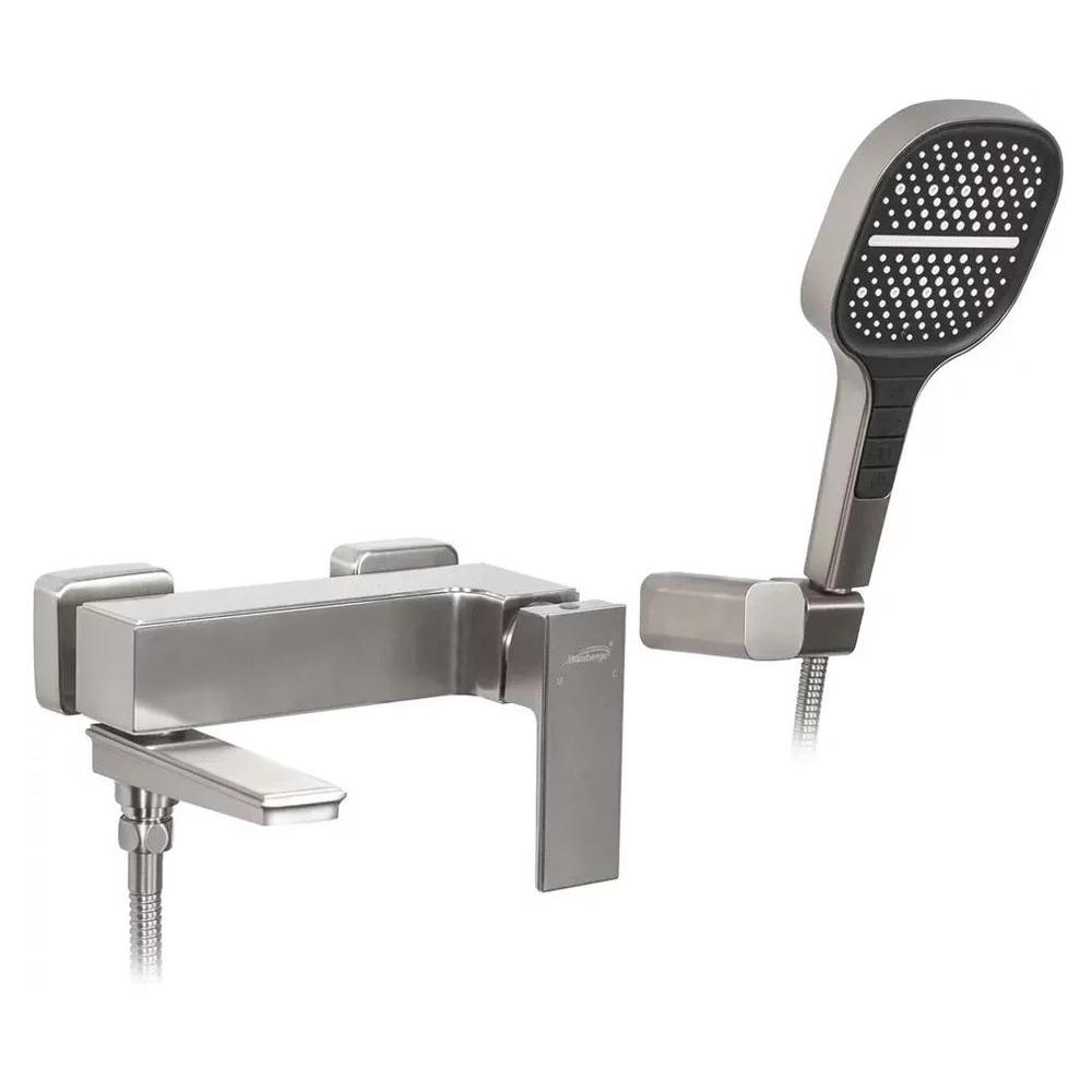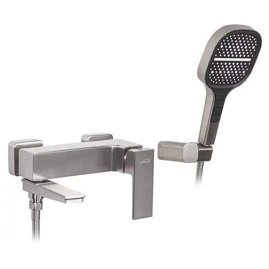 Смеситель для ванны Hansberge H4010NK, никель. Стилистика дизайна: современный стиль. Монтаж: настенный. Излив: традиционный поворотный. Управление: рычажное. Исполнение шланга: металл. Комплектация: смеситель, шланг, душевая лейка, держатель душевой лейки, эксцентрики, отражатели.