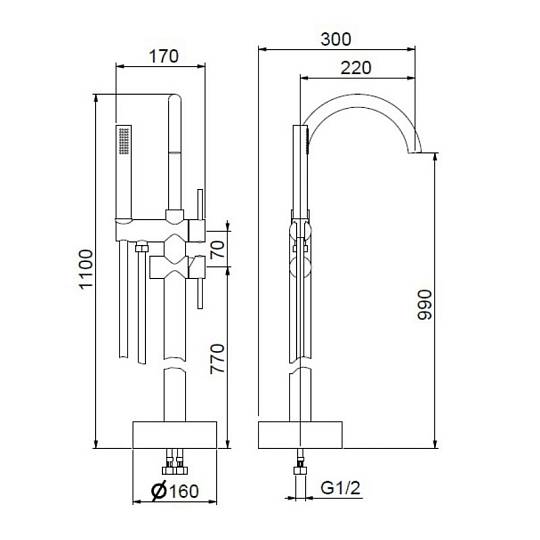 Смеситель для ванны напольный Webert Rimini. Смеситель изготовлен из латуни. Высота излива: 99 см.