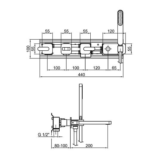 Смеситель для ванны Webert Living встраиваемый в стену. Смеситель изготовлен из латуни.