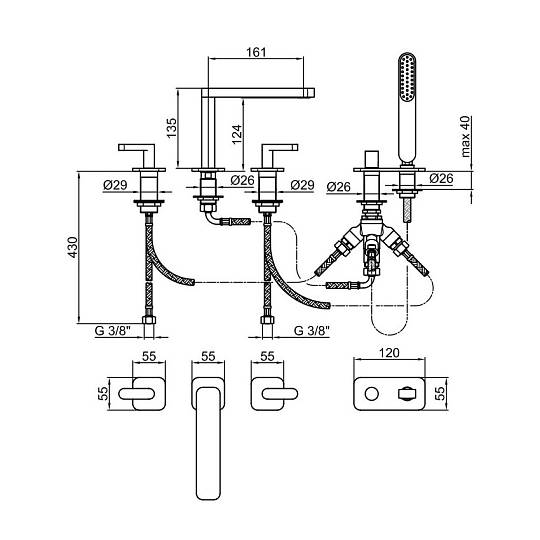 Смеситель, внутренняя часть, лейка, подводка, шланг