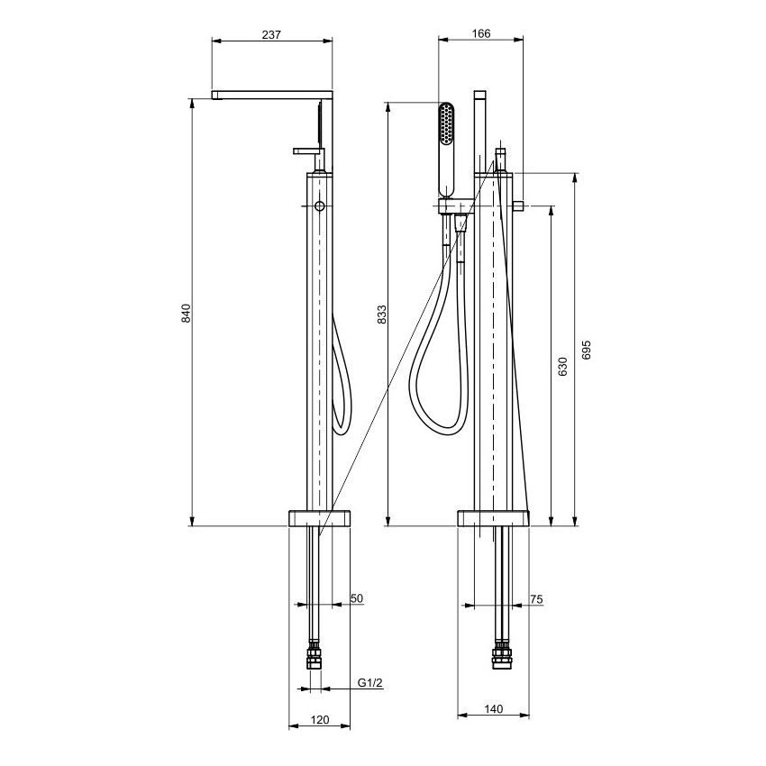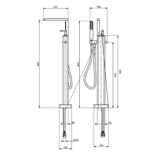 Смеситель для ванны напольный Webert Living. Смеситель изготовлен из латуни. Высота излива: 83,3 см.