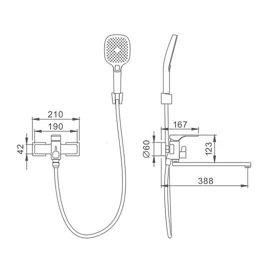Смеситель, шланг, душевая лейка, держатель душевой лейки, эксцентрики, отражатели