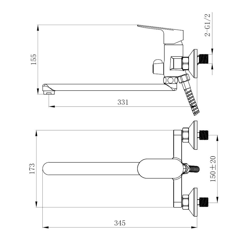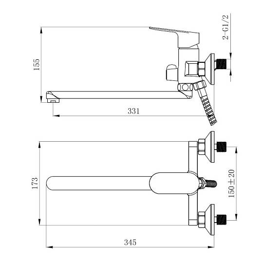 Смеситель для ванны VODA SHR31B, черный купить по цене 8 150 руб.