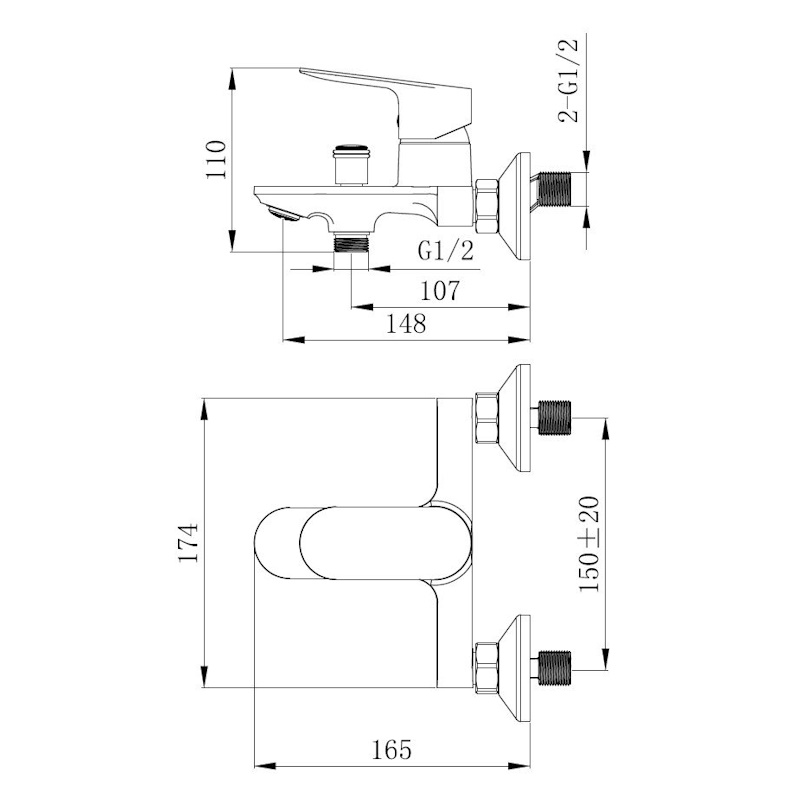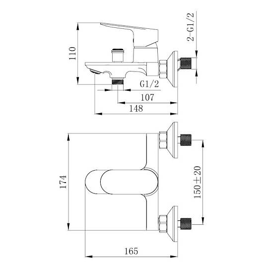 Смеситель для ванны VODA "Shore Black" SHR54B: Темная элегантность для вашей ванной.