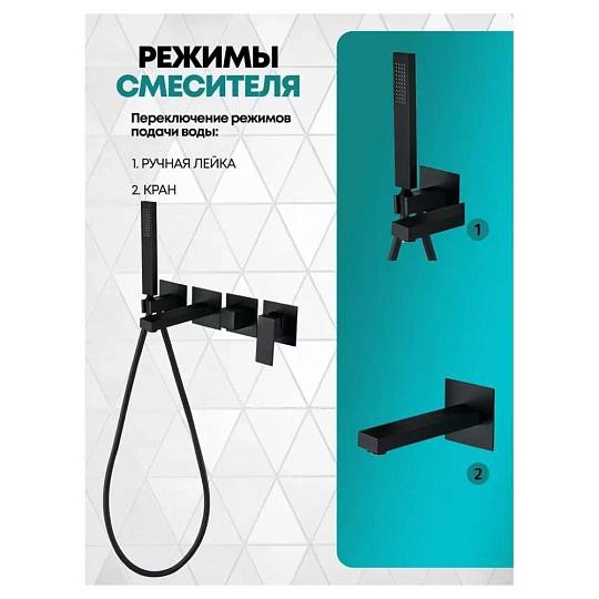 Смеситель для ванны встраиваемый Grocenberg GB5060BL, черный купить по цене 33 210 руб.