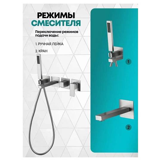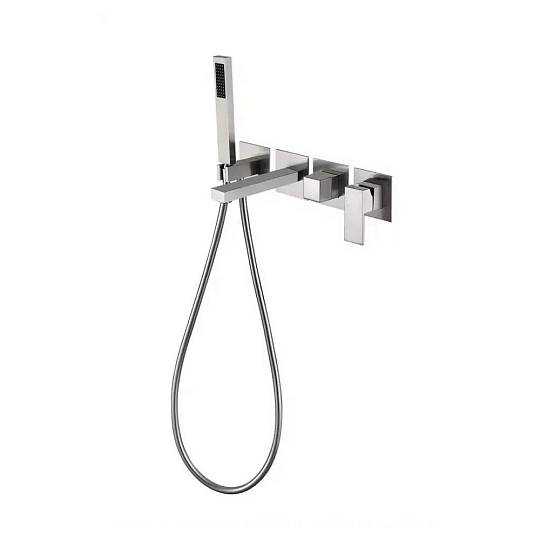 Смеситель для ванны встраиваемый Grocenberg GB5060NK, никель. Стилистика дизайна: современный стиль. Монтаж: внутренний (скрытый). Излив: традиционный фиксированный. Управление: рычажное. Исполнение шланга: PVC. Комплектация: смеситель, внутренняя часть, излив, шланговое подключение с держателем лейки, шланг, лейка, переключатель потоков.