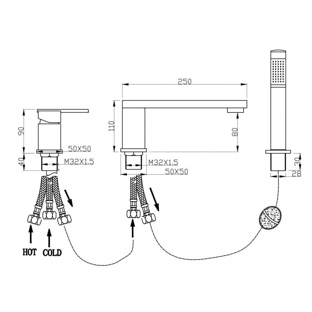 Смеситель на борт ванны Groсenberg GB6008BL, черный