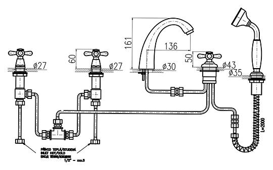 Смеситель на борт ванны Rav Slezak Morava MK576.5 монолитный, с душевым гарнитуром, изготовлен из высококачественной латуни, которая исключает какую-либо коррозию. Латунные рукоятки. Керамическиe кран буксы, производство Германия. Керамический переключатель душ/излив. Металлический шланг с двойной оплеткой, с пружиной, которая обеспечивает лёгкое возвращение шланга в держатель. Длина шланга 2000 мм. Латунная душевая лейка. В комплекте смеситель, шланг, душевая лейка, гибкая подводка и комплект крепления.