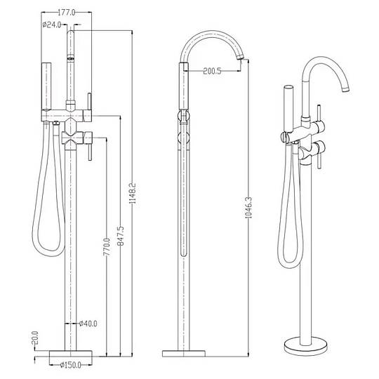 Идеальное решение для просторных интерьеров ванной комнаты. Напольный смеситель для ванны с душевым гарнитуром Groсenberg GB900 придаст вашему помещению особый шарм и подчеркнет изысканный вкус владельца. Высококачественный материал изготовления этого напольного смесителя для ванны обеспечивает долговечность и надежность эксплуатации.