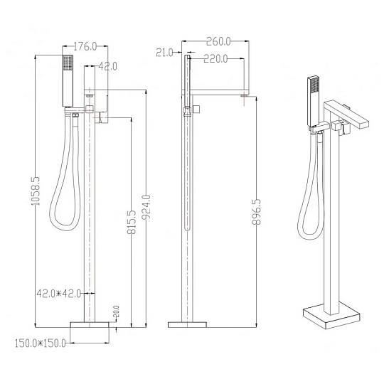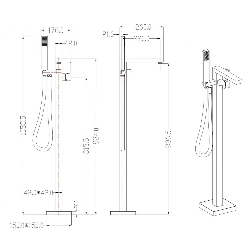 Данный товар подойдет вам, если вы ищете напольный смеситель для ванны и душа, душевой гарнитур напольный, душевую систему напольную, душевой комплект напольный, душевой набор, душ со смесителем на пол, смеситель с ручной лейкой на пол, комплект для душа напольный из латуни.