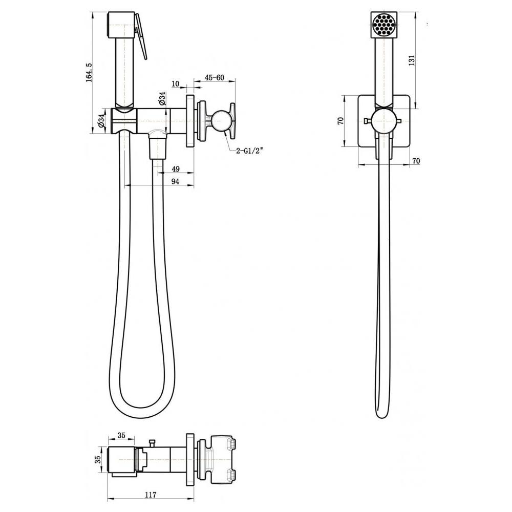 Смеситель встраиваемый с гигиеническим душем Grocenberg GB005BLBL, черный