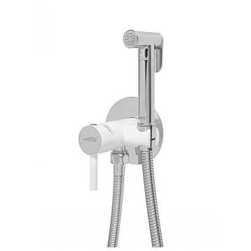 Смеситель встраиваемый с гигиеническим душем Hansberge H3099W, хром/белый.
