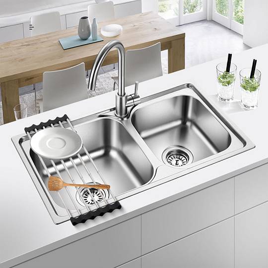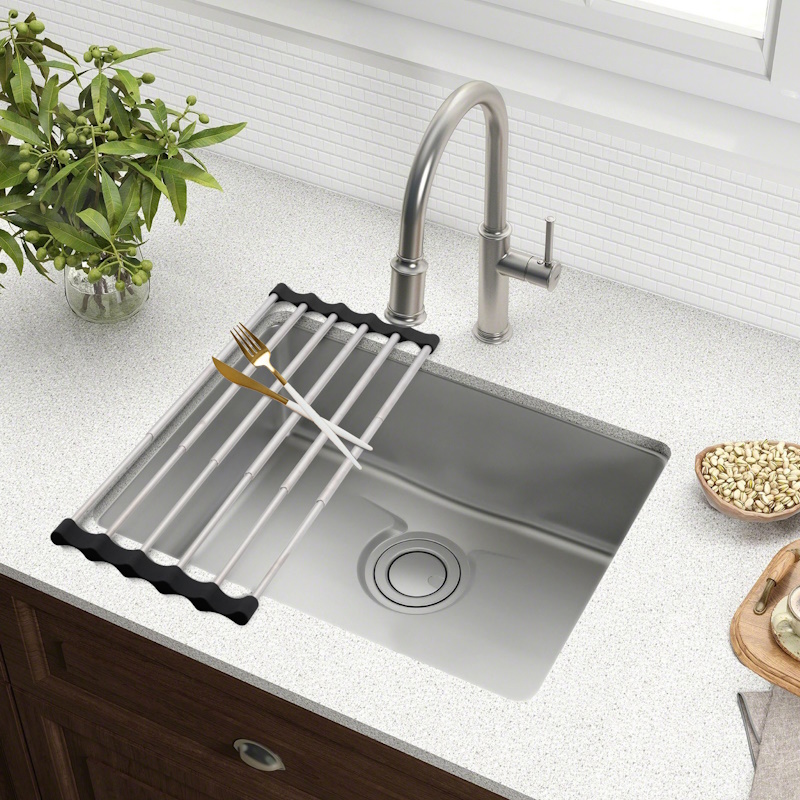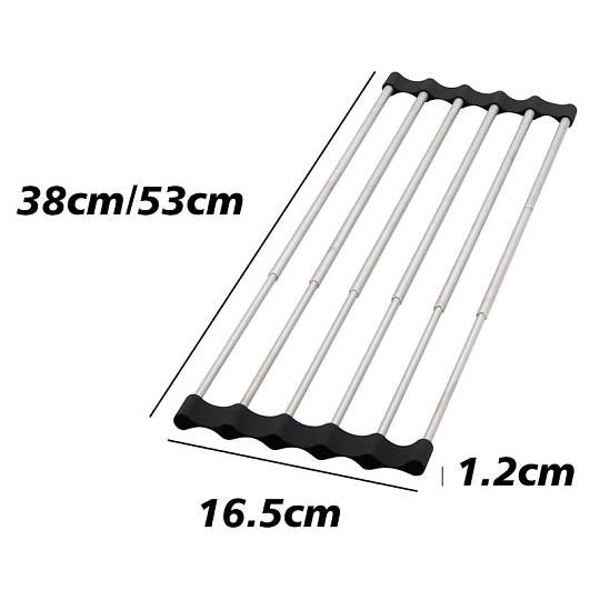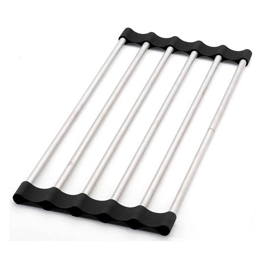 Сушилка ролл-мат раздвижная Fmark FS-PJ-010. Длина изделия 380-530 мм. Монтаж на кухонную мойку. Материал нержавеющая сталь.