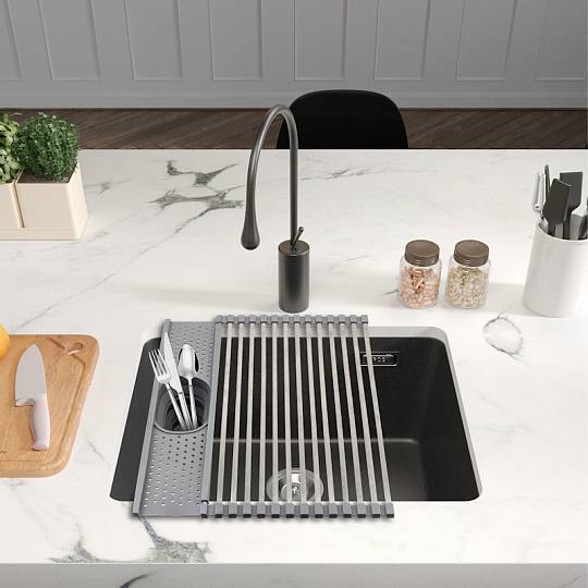 Сушилка ролл-мат с держателем приборов Fmark FS-PJ-002. Монтаж на кухонную мойку. Материал нержавеющая сталь. Цвет покрытия сатин.