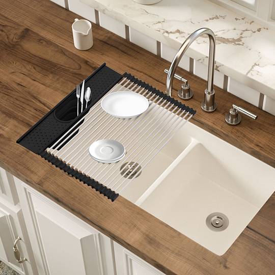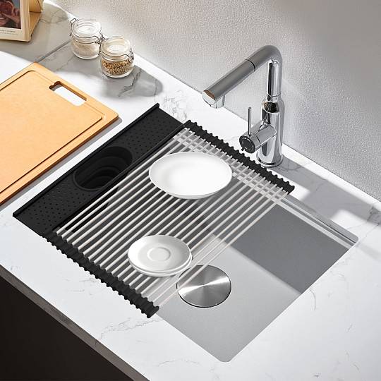 Сушилка ролл-мат с держателем приборов Fmark FS-PJ-003. Монтаж на кухонную мойку. Материал нержавеющая сталь. Цвет покрытия сатин.