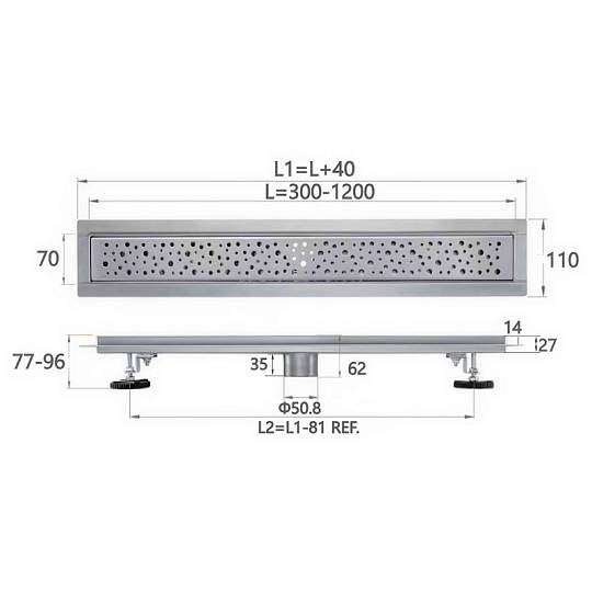Корпус и декоративная решётка выполнены из нержавеющей стали с износостойким покрытием, устойчивым к влаге, бытовой химии и царапинам. Низкий профиль и продуманная геометрия лотка обеспечивают быстрый отвод воды и комфорт при ежедневном использовании.