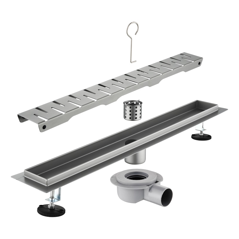 Корпус и декоративная решётка выполнены из нержавеющей стали с износостойким покрытием, устойчивым к влаге, бытовой химии и царапинам. Низкий профиль и продуманная геометрия лотка обеспечивают быстрый отвод воды и комфорт при ежедневном использовании.