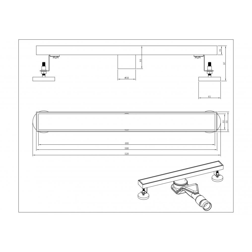 Длина душевого канала 500 мм