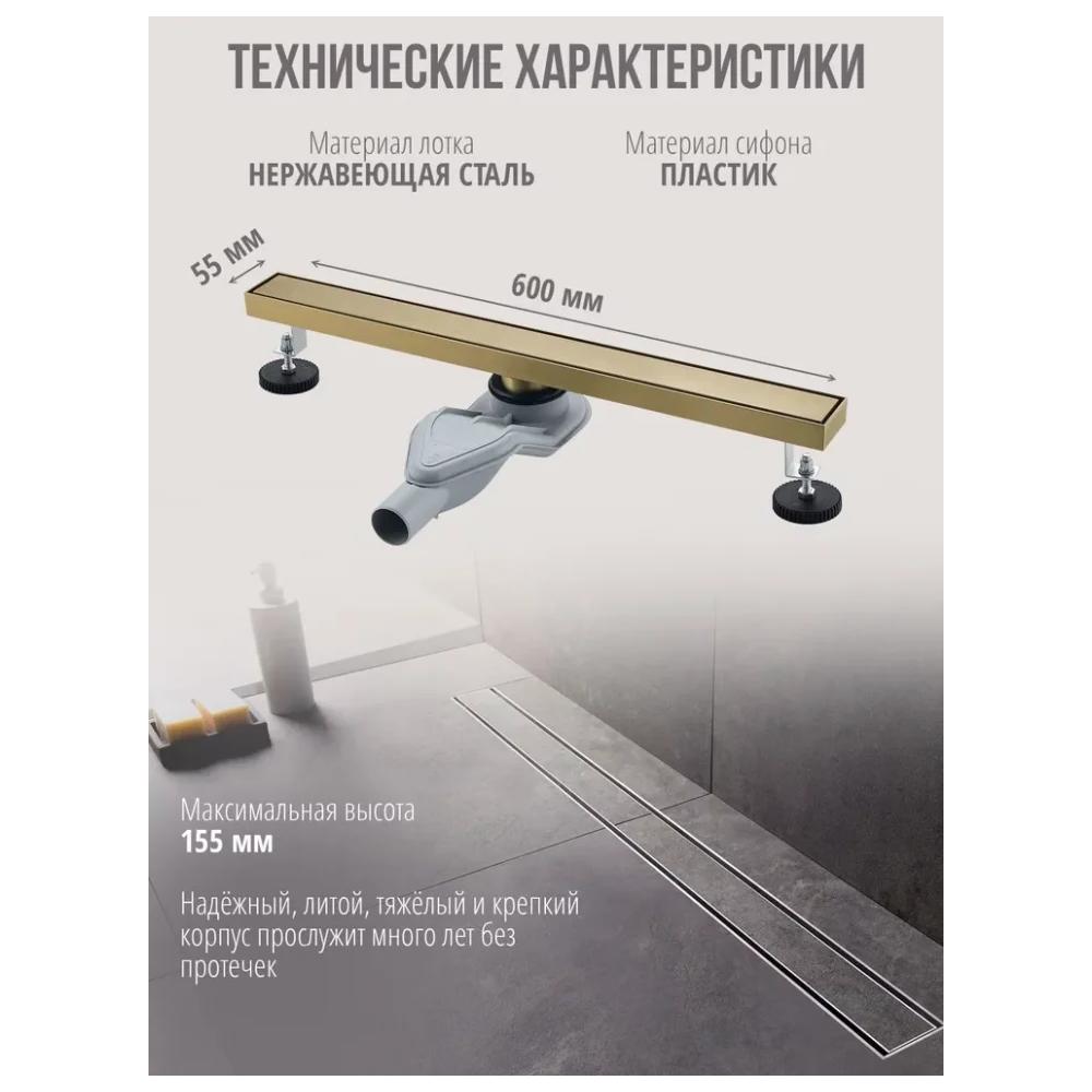 Трап для душа Grocenberg T600, матовое золото купить по цене 11 430 руб.