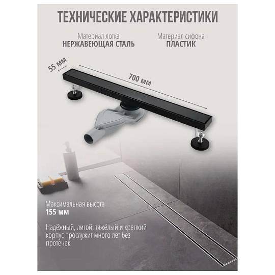 Трап для душа Grocenberg T700, черный купить по цене 11 970 руб.
