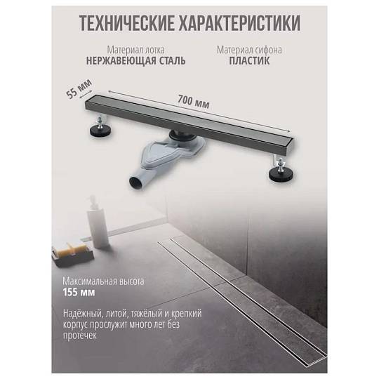 Трап для душа Grocenberg T700, графит купить по цене 12 600 руб.