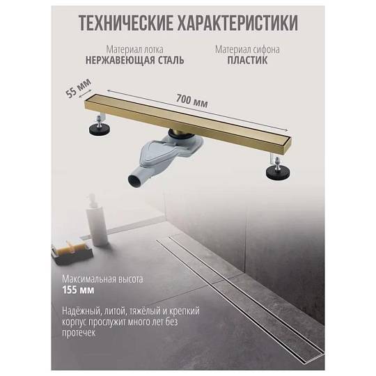 Ширина душевого канала: 55 мм