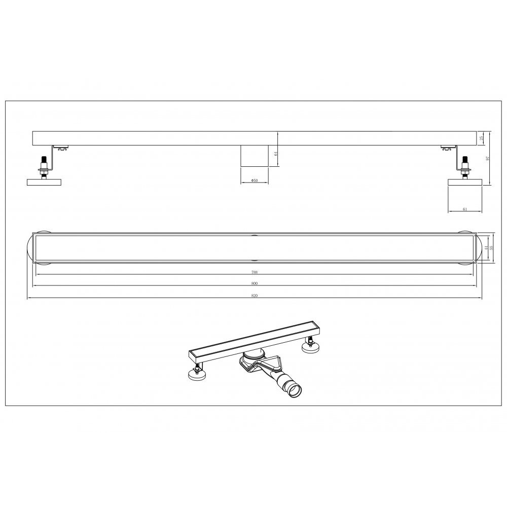 Длина душевого канала 800 мм