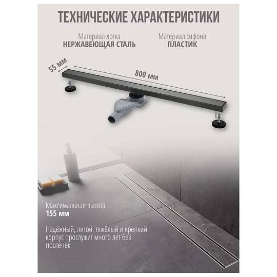 Ширина душевого канала: 55 мм