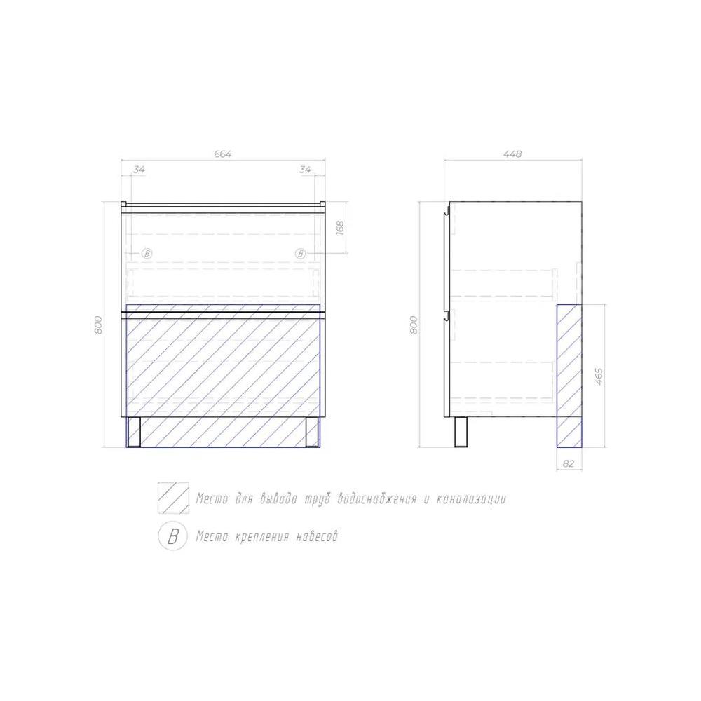 Тумба под раковину напольная VIGO Cross 448, 70 см. Гарантийный срок 2 года. Монтаж: напольный. Доводчик: да. Нажимной механизм: нет.