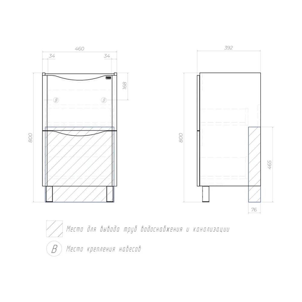 Тумба под раковину напольная VIGO Glem 321, 50 см. Гарантийный срок 2 года. Монтаж: напольный. Доводчик: да. Нажимной механизм: нет.