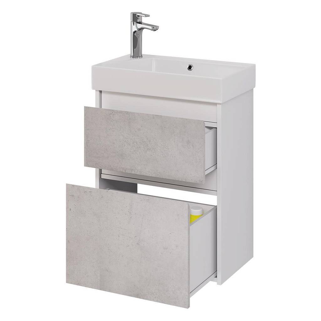 Тумба под раковину подвесная Dreja Slim 55 см, белый/бетон. Фурнитура: Boyard. Компоновка: 2 ящика. Монтаж: подвесной/напольный.