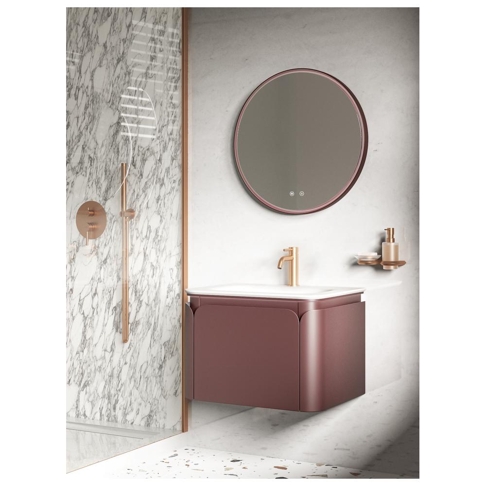 Подвесная тумба из МДФ и фанеры в благородном цвете «бордо» сочетает прочность конструкции и выразительную современную эстетику. Встроенная LED-подсветка 4000К с датчиком движения автоматически включается и выключается, а ящики из ЛДСП с направляющими полного выдвижения Soft Close обеспечивают плавное и комфортное использование зоны хранения.