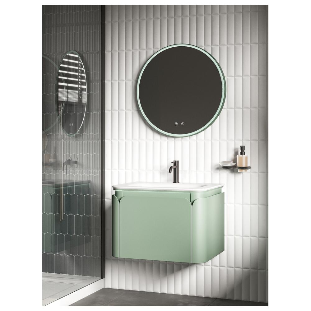 Подвесная тумба из МДФ и фанеры в благородном цвете «матча» сочетает прочность конструкции и выразительную современную эстетику. Встроенная LED-подсветка 4000К с датчиком движения автоматически включается и выключается, а ящики из ЛДСП с направляющими полного выдвижения Soft Close обеспечивают плавное и комфортное использование зоны хранения.