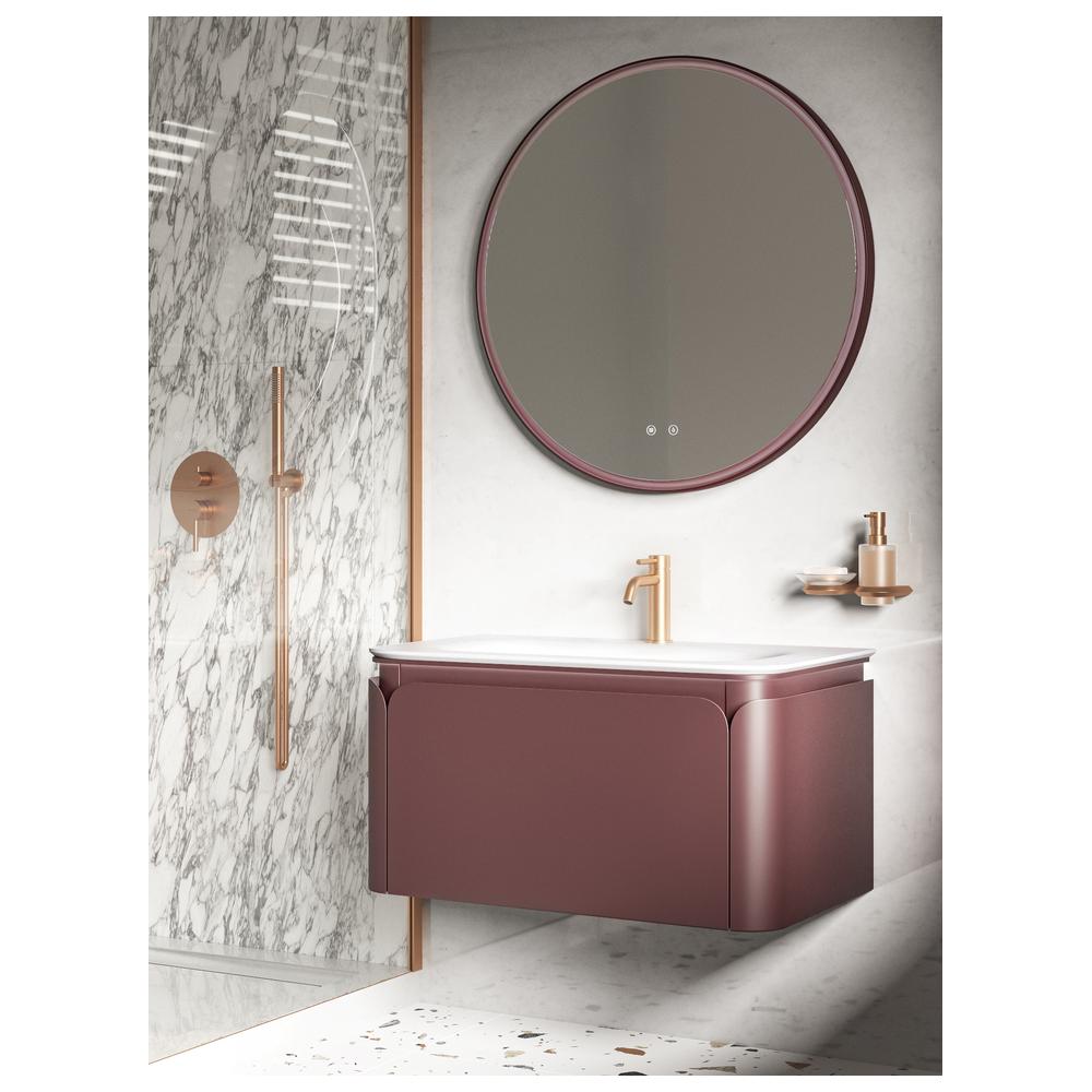 Подвесная тумба из МДФ и фанеры в благородном цвете «бордо» сочетает прочность конструкции и выразительную современную эстетику. Встроенная LED-подсветка 4000К с датчиком движения автоматически включается и выключается, а ящики из ЛДСП с направляющими полного выдвижения Soft Close обеспечивают плавное и комфортное использование зоны хранения.