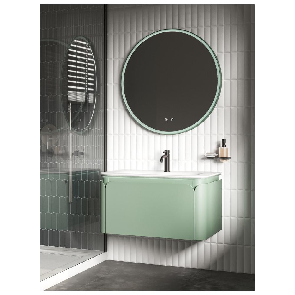 Подвесная тумба из МДФ и фанеры в благородном цвете «матча» сочетает прочность конструкции и выразительную современную эстетику. Встроенная LED-подсветка 4000К с датчиком движения автоматически включается и выключается, а ящики из ЛДСП с направляющими полного выдвижения Soft Close обеспечивают плавное и комфортное использование зоны хранения.