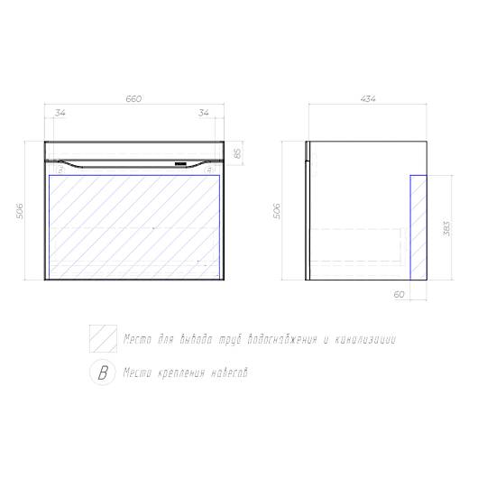 Тумба под раковину подвесная Velvex Alba 309, 70 см: 1 выдвижной ящик.