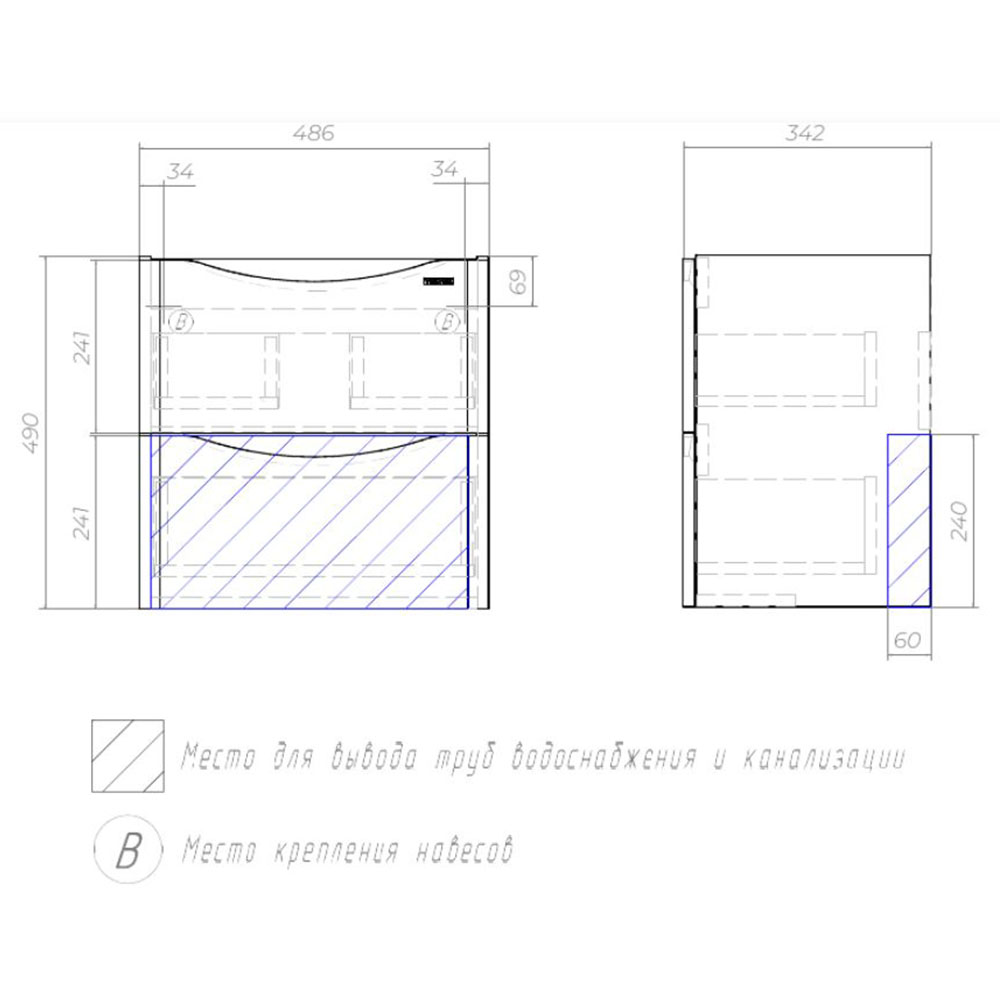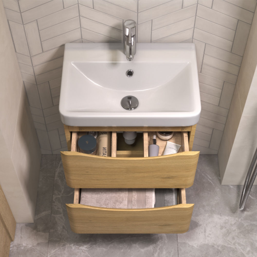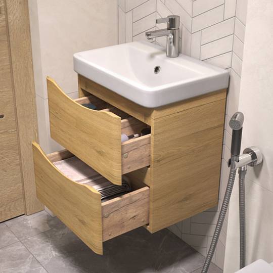 Тумба под раковину подвесная Velvex Clay 370, 50 см: 2 выдвижных ящика с механизмом плавного закрывания.